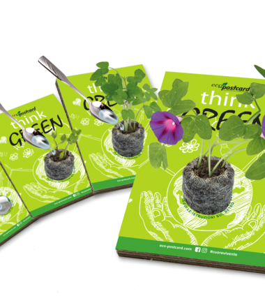 Eco-postcard è un gadget ecologico innovativo e versatile, con un “cuore vivente” che dà vita ai tuoi messaggi ecosostenibili!