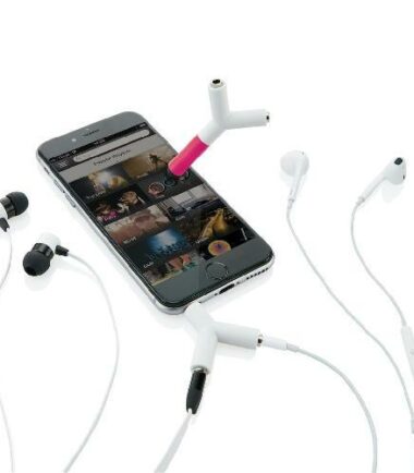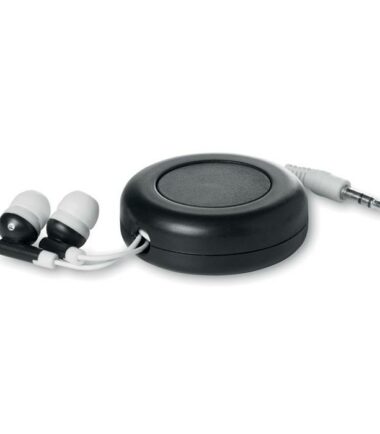 Cuffie auricolari fornite in sacchettino di tessuto con laccetti di chiusura, disponibili in bianco, blu, rosso, nero e personalizzabili con logo sul sacchettino.