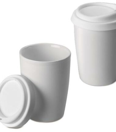 Tazza vintage in metallo smaltato personalizzabile con logo.