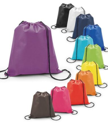 Zainetto con chiusura a coulisse, in TNT, dimensioni 37x41cm, disponibile in tanti colori, personalizzabile con logo o scritta su ampia area di stampa.