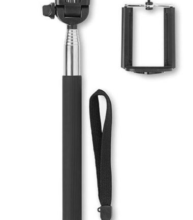 Set braccio per selfie e video in acciaio inossidabile con manico in silicone, personalizzabile con logo. Telecomando bluetooth incluso. Dimensioni: 35x5.5x3cm