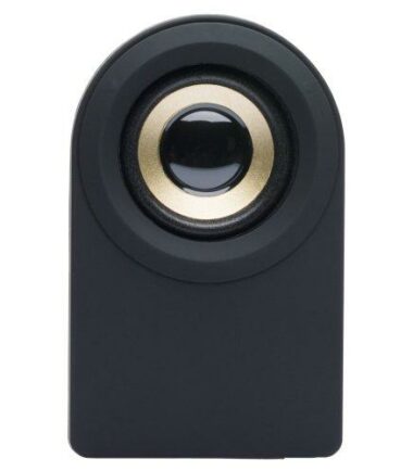 Mini cassa per smartphone o tablet, piccola e compatta (dimensioni 5x3 cm), con connessione jack3,5mm. Disponibile in nero, blu o rosso, personalizzabile con logo.