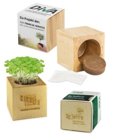 Set da scrivania racchiuso in cubo componibile, composto da scomparti per biglietti da visita, vano porta oggetto, blocchetto segnapagine adesivi gialli e verdi. Dimensioni 37x9x9cm, personalizzabile con logo.