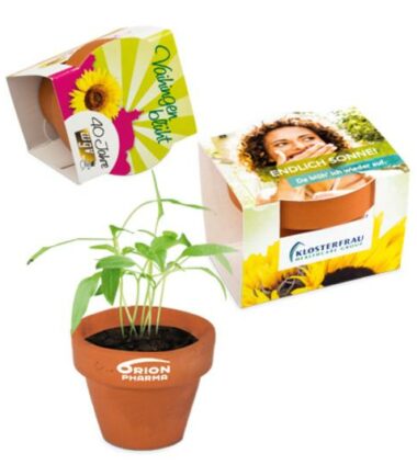 Vasetto di miele personalizzabile con logo, confezionato in scatolina ecologica con incorporati semi di fiori misti per le api.