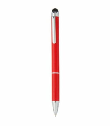 Penna in alluminio con puntatore touchscreen, ideale per tablet e smartphone, personalizzabile con scritte o logo, disponibile in vari colori e modelli.