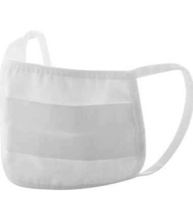 Visiera protettiva per naso e bocca in PET trasparente personalizzabile con stampa a 1 colore.