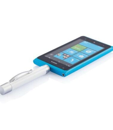 Penna multifunzione: scrive come una normale penna a sfera, è un ricarica batterie portatile ed è un puntatore per dispositivi touchscreen. Personalizzabile con logo.