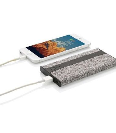 Powerbank in lino, leggera e dal design elegante. Capacità 4000 mAH, scocca in ABS, rivestimento in lino, indicatori di carica integrati. Micro cavo USB incluso. Personalizzabile con logo.